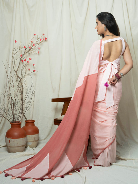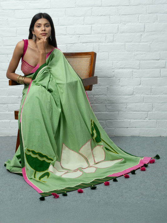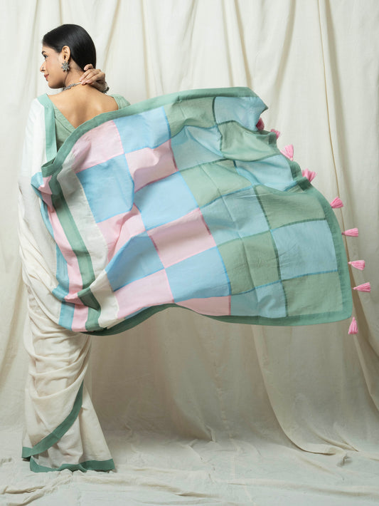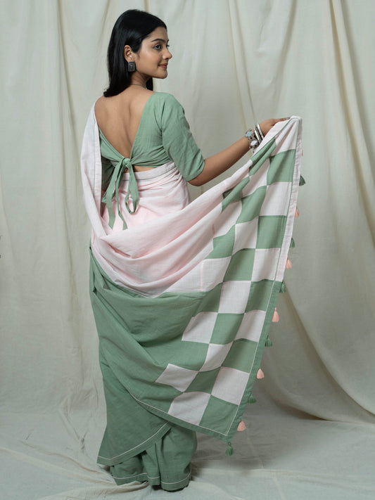 Pure cotton, simple, elegant, easy to carry and such vibrant colours. There's nothing to not like about this saree. And I love the fact that it's made our of katran (small unused pieces of clothing which would otherwise have gone to waste). Can match with any contrast blouse and wear on different occasions