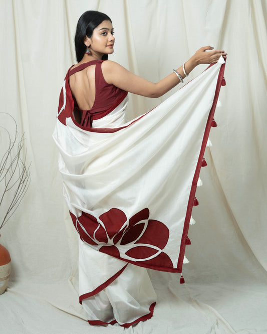 It is so comfortable, trendy and pretty saree. And most importantly, the brand is sustainable. Red and white saree is a must for every Bengali woman out there. So, instead of buying the same traditional saree every year, opt for this unique saree. Trust me, you will get so many compliments!