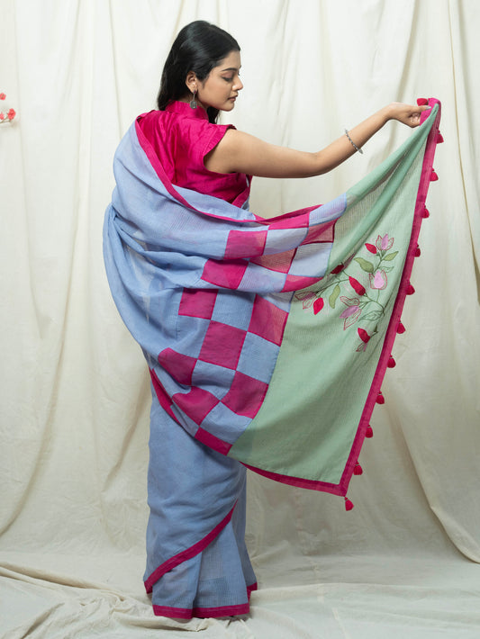 Draping this saree felt like accepting the quirks in you. I wore it for a formal event, where people usually come in mundane blues and blacks., almost everyone looking the same. This was such a confidence booster and definitely makes you stand out of the crowd. Also, in terms of fabric it’s really comfy, soft cotton. Can wear it all day, any day!