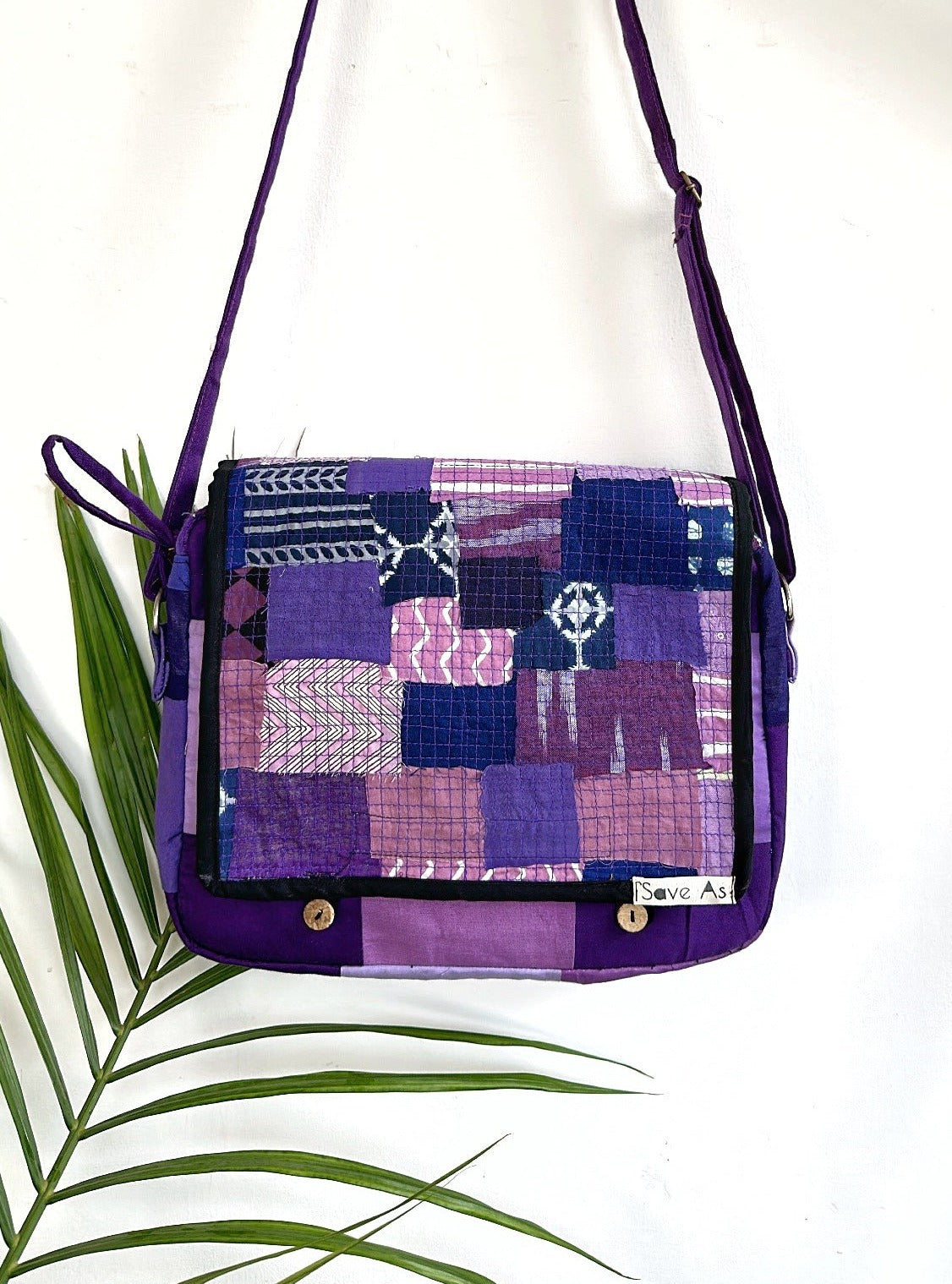 This colorful messenger bag is made by a sustainable fashion brand that uses recycled fabric scraps to create unique and stylish accessories. The bag has multiple pockets for organizing your essentials, and a secure zipper and velcro closure to keep your belongings safe. It is spacious enough to fit an iPad or other small tablets, making it perfect for school or work. The use of recycled fabric not only helps to reduce waste but also gives each bag its own unique look. Show off your eco-friendly style with this one-of-a-kind messenger bag.